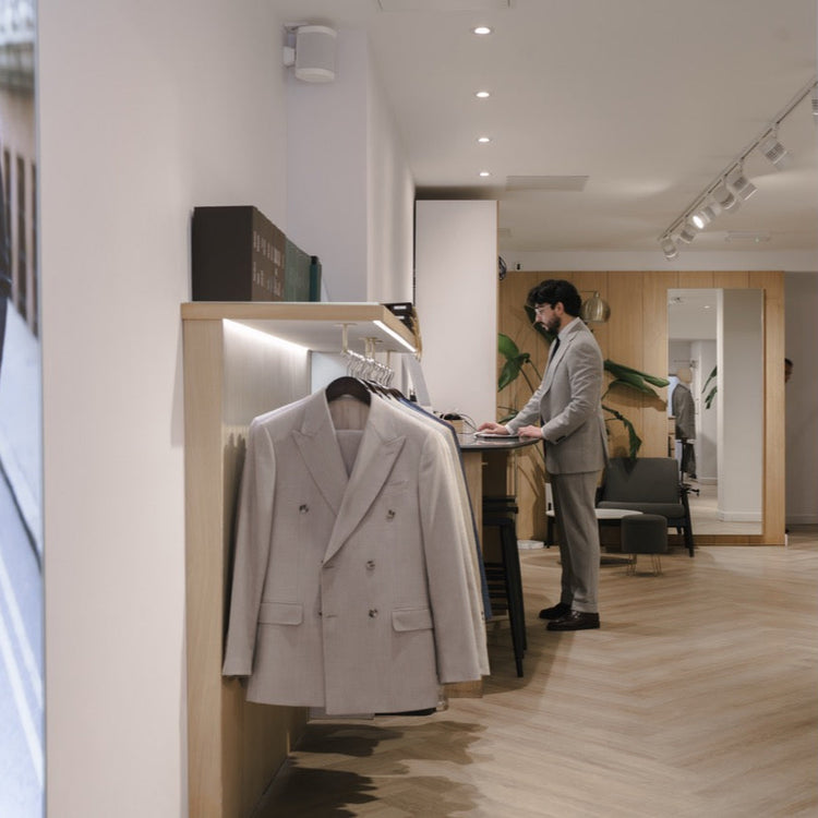 We have two suit shops in London, offering luxury made-to-measure suits, custom shirts and tailored separates.