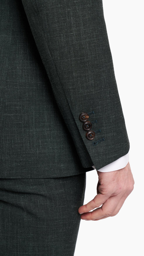 Green Wool Silk Linen Suit with Loro Piana Fabric
