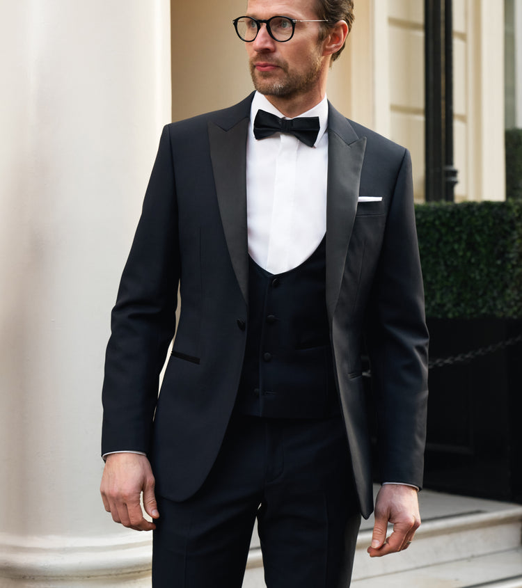 From classic satin lapels and crisp pleated shirts to modern shawl collars and velvet dinner jackets, every detail can be chosen to reflect your personal style. With thousands of premium fabrics available, our tailoring consultants help you strike the perfect balance between tradition and individuality.
