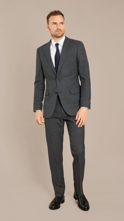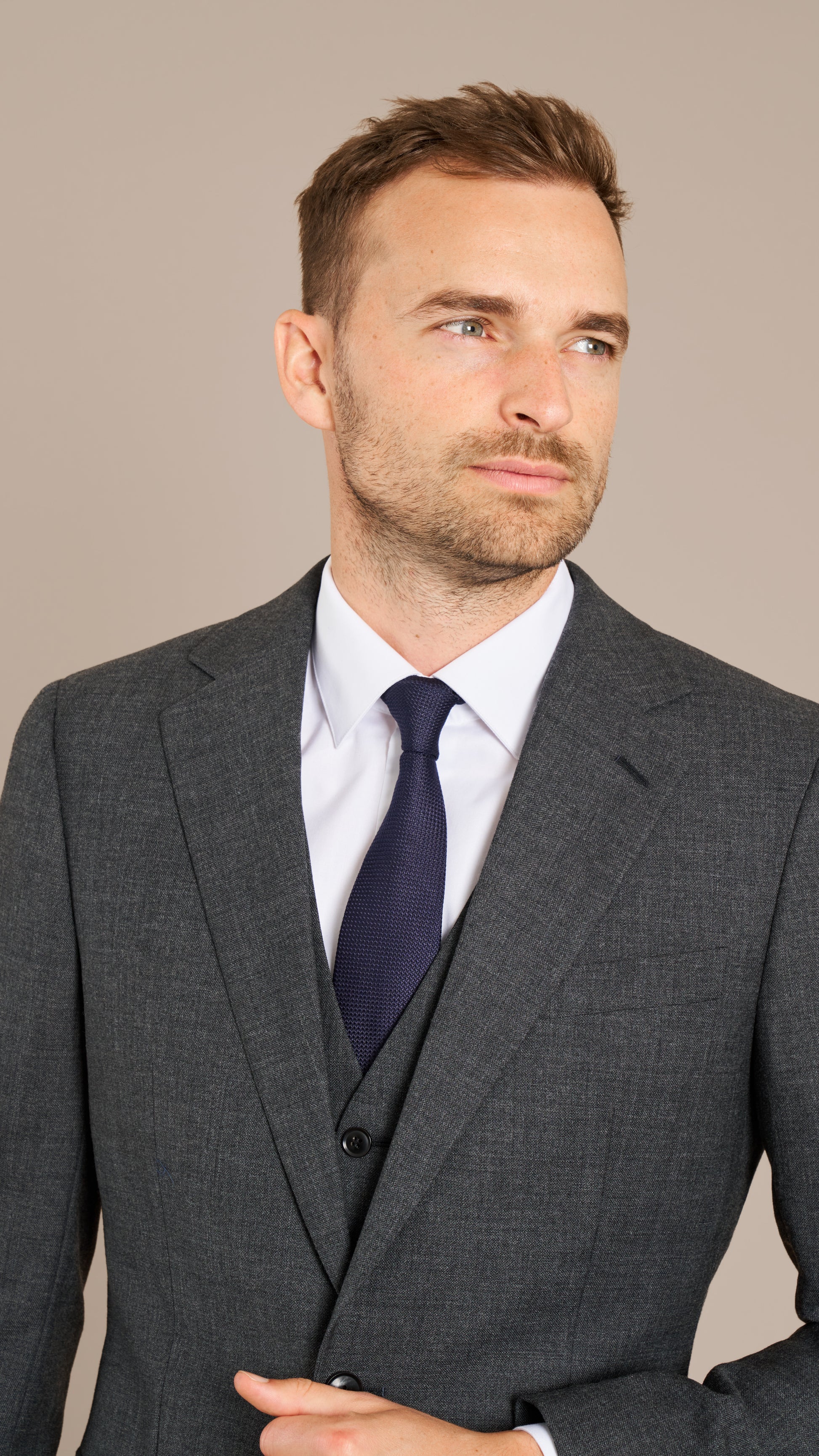 Woven in Yorkshire by Alfred Brown, this 100% pure new wool suit combines classic tailoring with all-season versatility. The plain weave structure provides a smooth, durable finish with a soft drape and natural stretch for all-day comfort. Ideal for business, formal events, or as a refined groom suit, it delivers understated British sophistication.